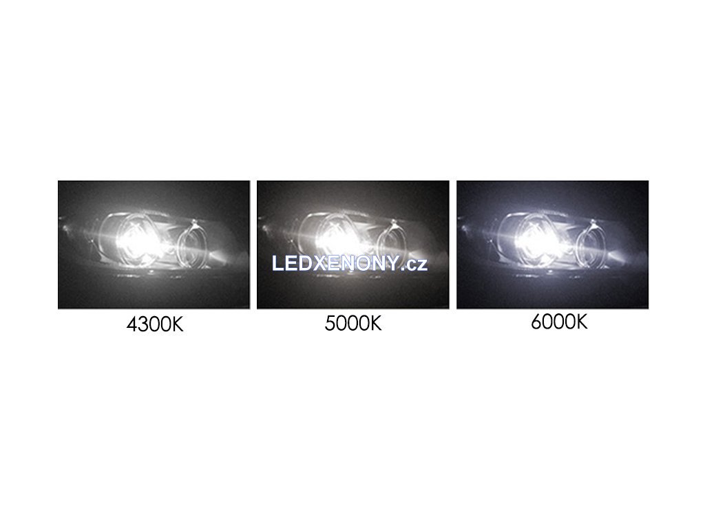 - 4500K - teplá bílá barva (nejčastější barva v originálních světlometech)